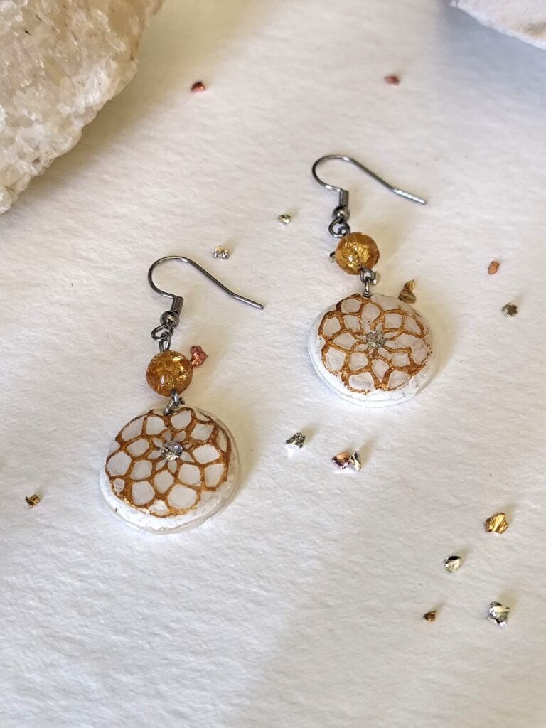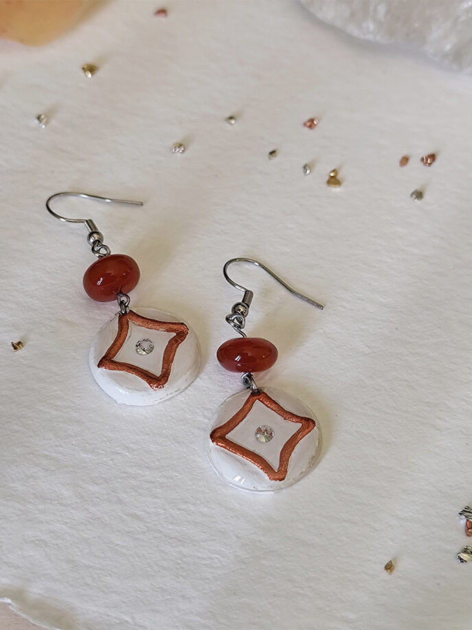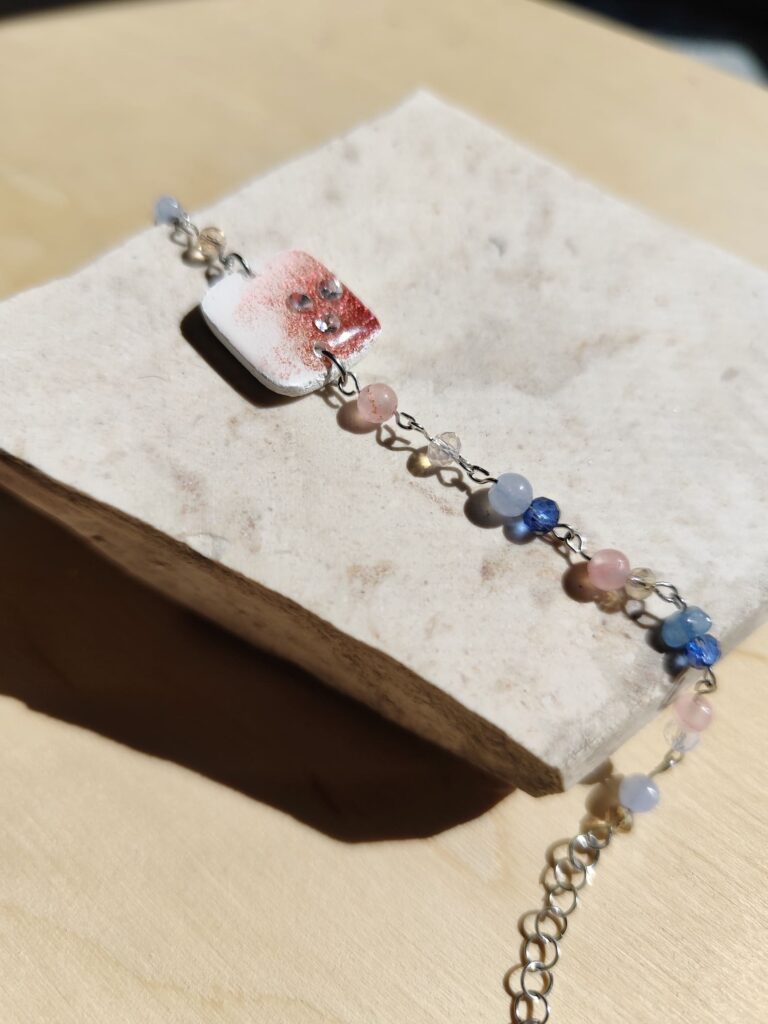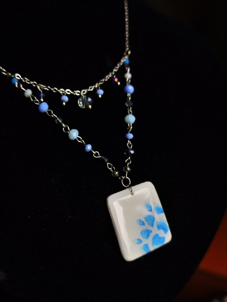 I miei gioielli sono realizzati in argilla sintetica modellata a mano, decorati con ad acquarello e impreziositi con pietre dure naturali e cristalli di vetro Swarovski, il tutto montato con materiali in acciaio inossidabile.